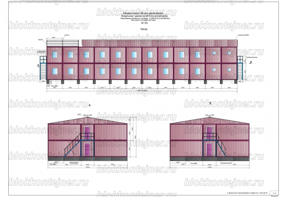 Общежитие на 50 человек, двухэтажное из 36 БК